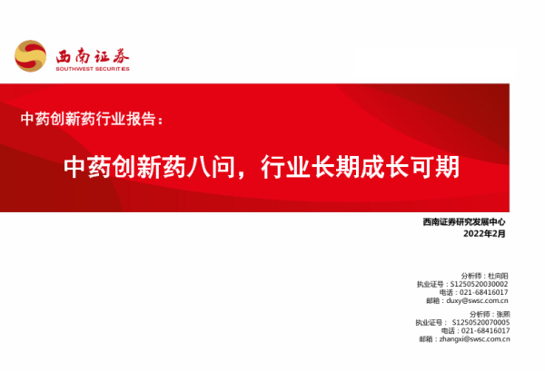 【西南证券】【20220213】中药创新药行业报告:中药创新药八问,行业长期成长可期-29页