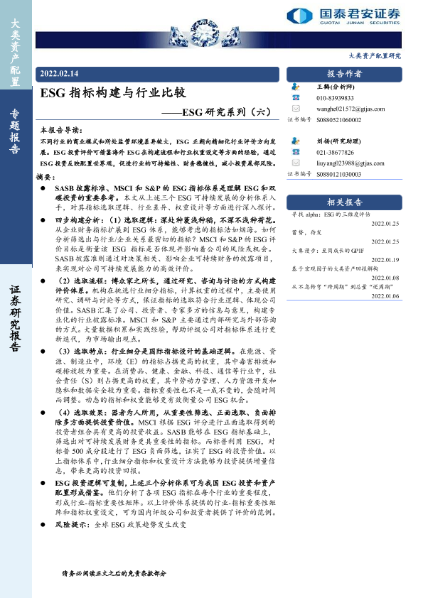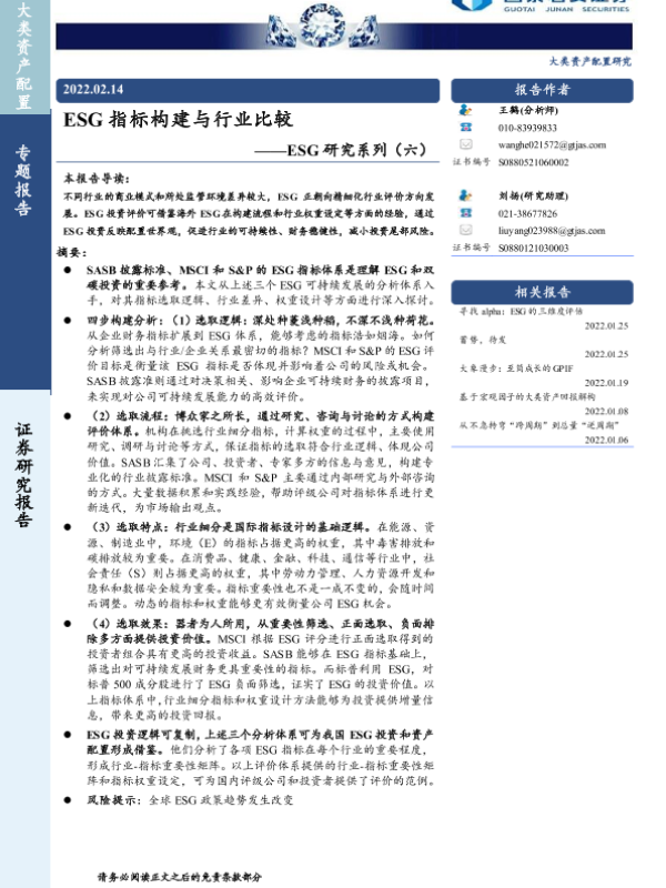 【国泰君安证券】【20220214】ESG指标构建与行业比较-22页