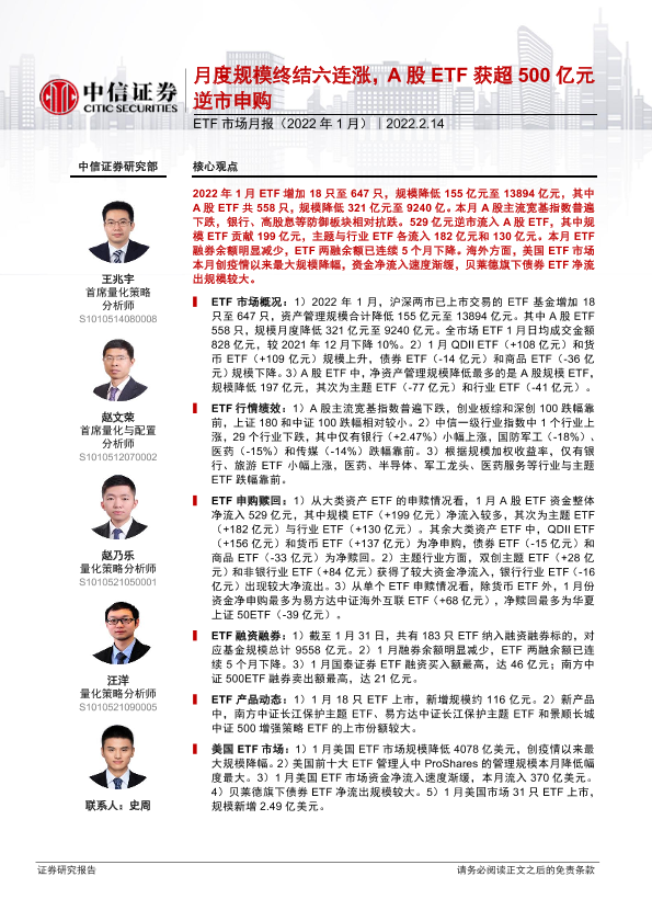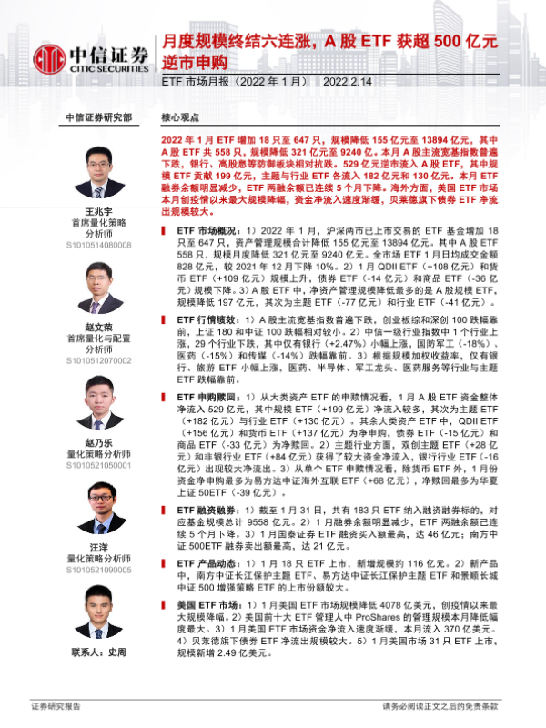 【中信证券】【20220214】ETF市场月报(2022年1月):月度规模终结六连涨,A股ETF获超500亿元逆市申购-23页