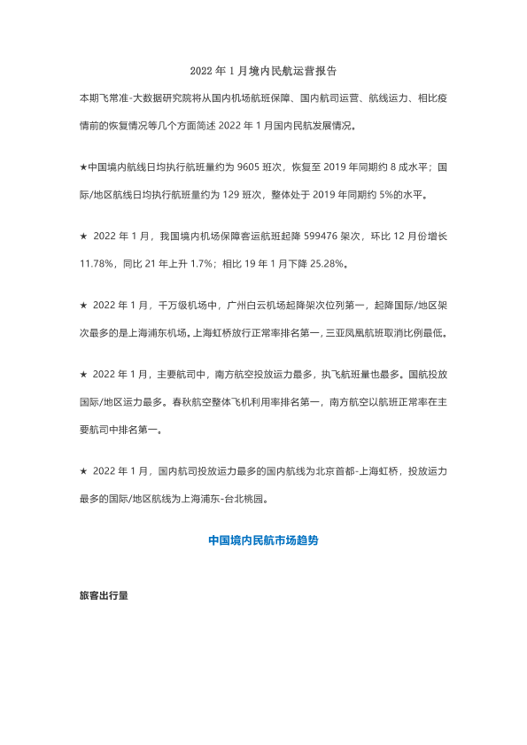 【飞常准-大数据研究院】【202201】2022年1月境内民航运营报告-11页
