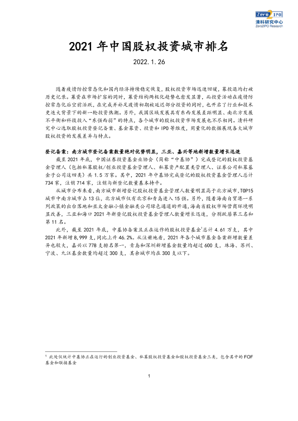 【清科研究中心】【20220126】2021年中国股权投资城市排名-9页