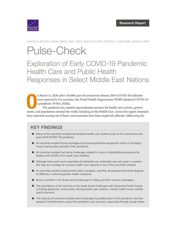 【RAND Corporation】【202203】兰德-脉搏检查:中东地区早期新冠病毒流行病保健和公共卫生反应的探讨-32页