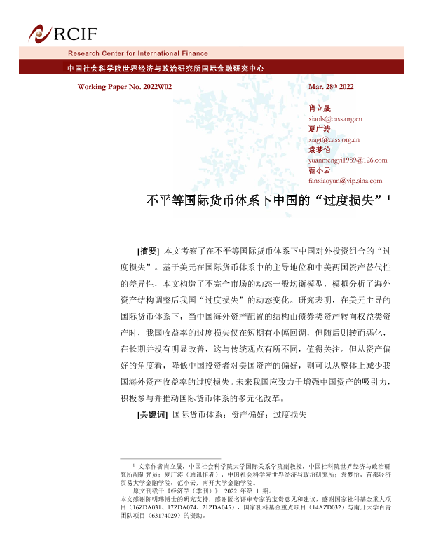 【中国社会科学院】【202201】不平等国际货币体系下中国的“过度损失”-24页