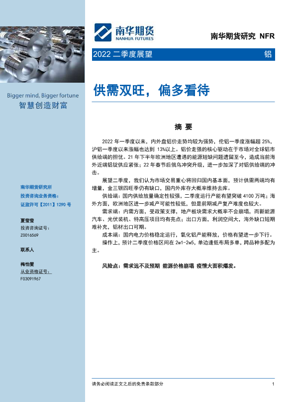 【南华期货】【20220406】2022铝二季度展望:供需双旺,偏多看待-25页