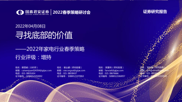 【国泰君安证券】【20220401】2022年家电行业春季策略:寻找底部的价值-45页