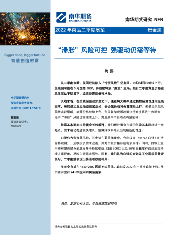 【南华期货】【20220406】2022贵金属商品二季度展望:“滞胀”风险可控,强驱动仍需等待-26页