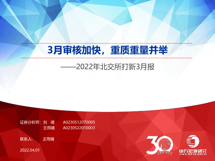 【申万宏源】【20220401】2022年北交所打新3月报:3月审核加快,重质重量并举-19页