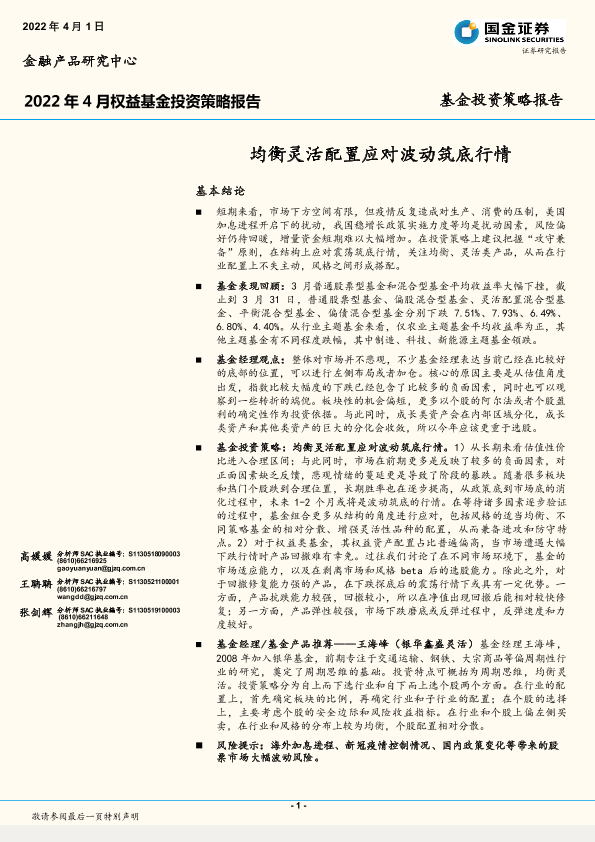 【国金证券】【20220401】2022年4月权益基金投资策略报告:均衡灵活配置应对波动筑底行情-18页
