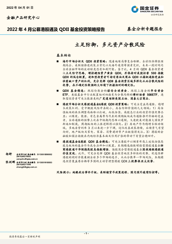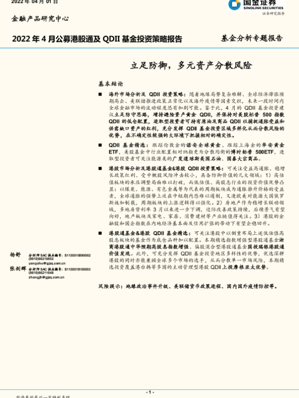 【国金证券】【20220401】2022年4月公募港股通及QDII基金投资策略报告:立足防御,多元资产分散风险-34页