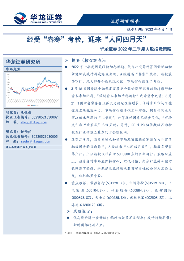 【华龙证券】【20220401】2022年二季度A股投资策略:经受“春寒”考验,迎来“人间四月天”-51页