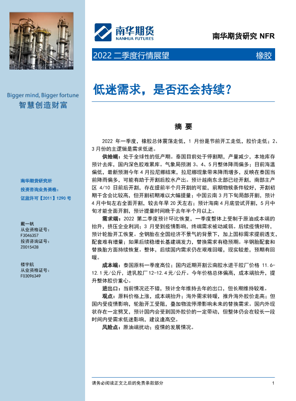 【南华期货】【20220406】2022橡胶二季度行情展望:低迷需求,是否还会持续?-28页