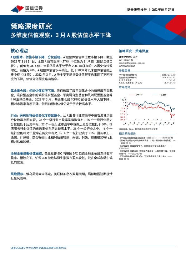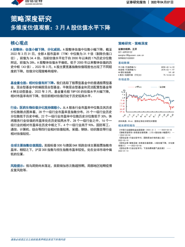 【国信证券】【20220407】策略深度研究:多维度估值观察,3月A股估值水平下降-34页