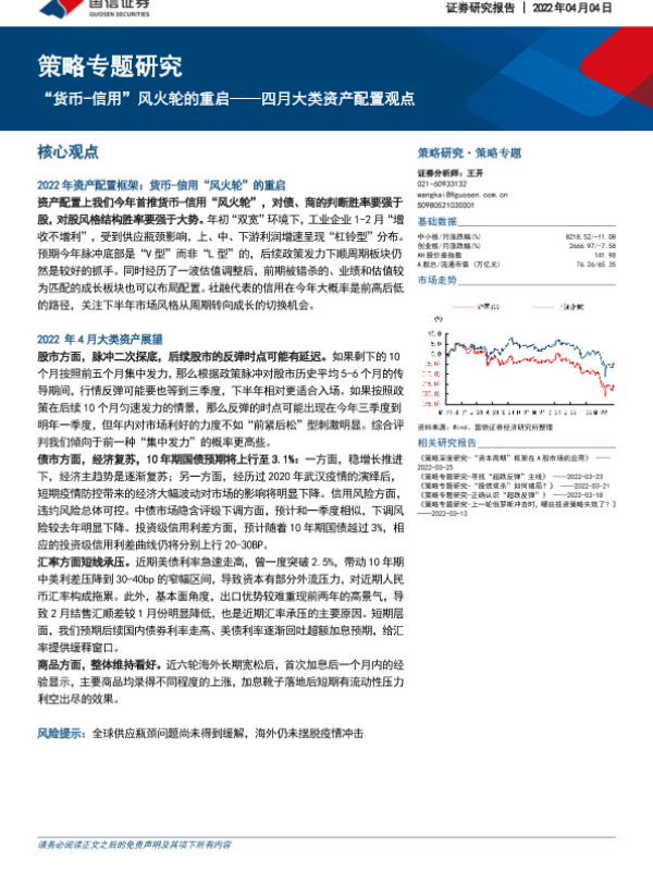 【国信证券】【20220404】策略专题研究:四月大类资产配置观点,“货币_信用”风火轮的重启-23页