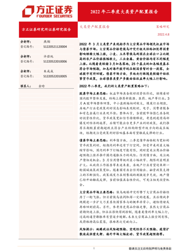 【方正证券】【20220408】2022年二季度大类资产配置报告-20页
