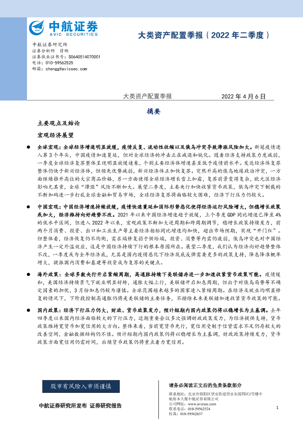【中航证券】【20220406】大类资产配置季报(2022年二季度)-34页