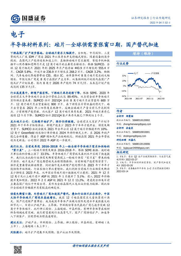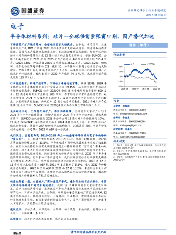 【国盛证券】【20220402】电子行业半导体材料系列:硅片—全球供需紧张窗口期,国产替代加速-33页