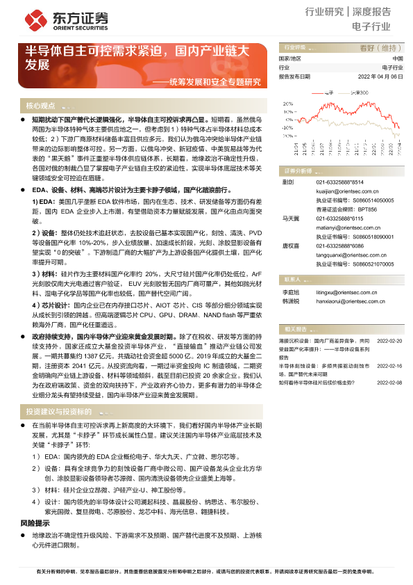 【东方证券】【20220406】电子行业统筹发展和安全专题研究:半导体自主可控需求紧迫,国内产业链大发展-26页