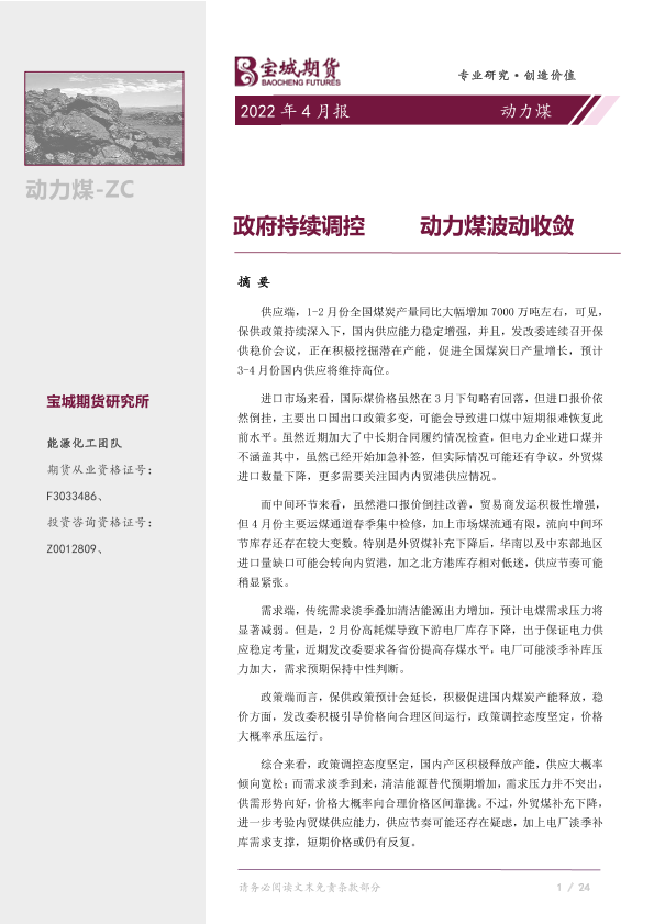 【宝城期货】【20220406】动力煤月报:政府持续调控,动力煤波动收敛-23页