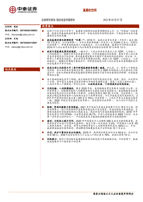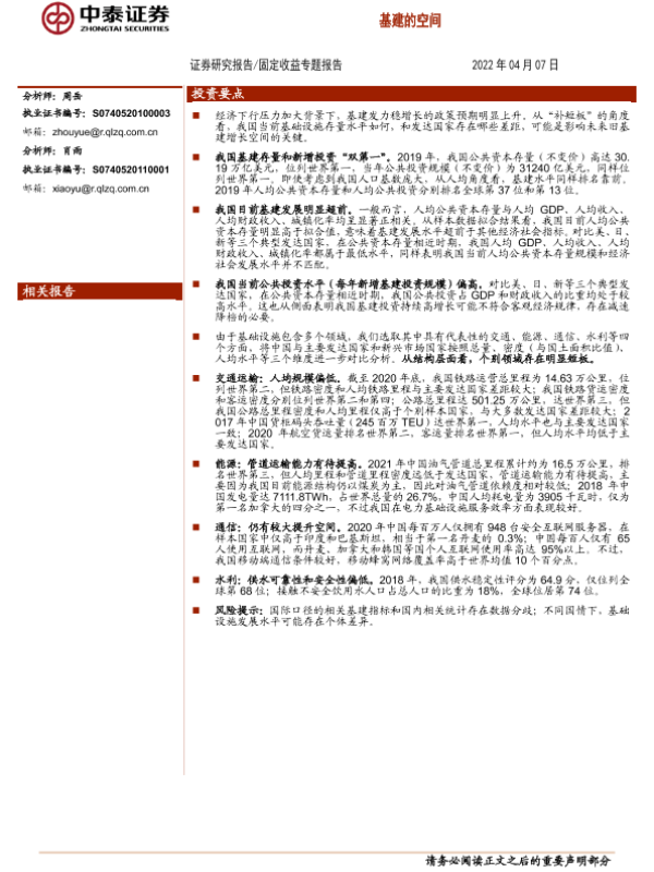 【中泰证券】【20220407】固定收益专题报告:基建的空间-21页