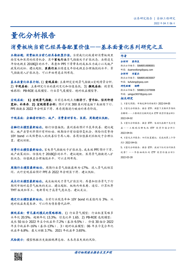 【国盛证券】【20220406】基本面量化系列研究之五:消费板块当前已经具备配置价值-21页