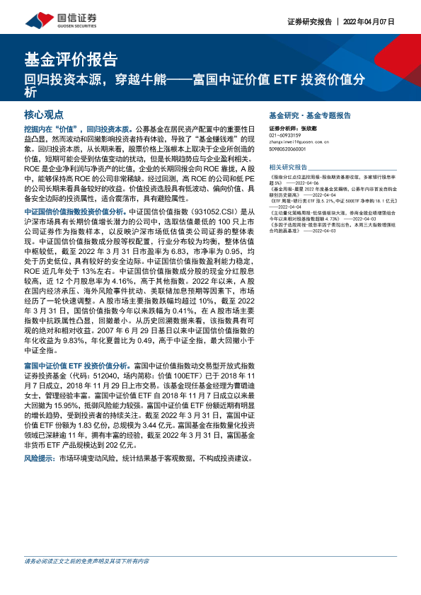 【国信证券】【20220407】基金评价报告:富国中证价值ETF投资价值分析,回归投资本源,穿越牛熊-21页