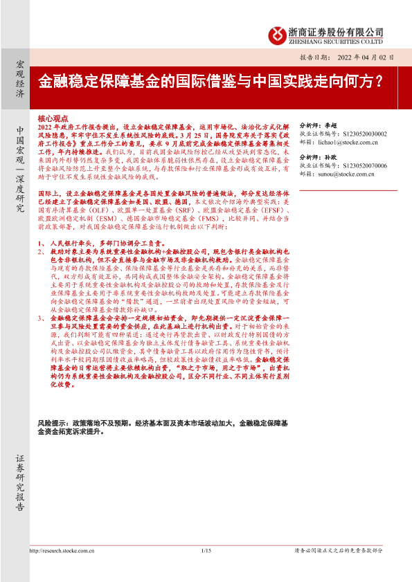 【浙商证券】【20220402】金融稳定保障基金的国际借鉴与中国实践走向何方?-15页