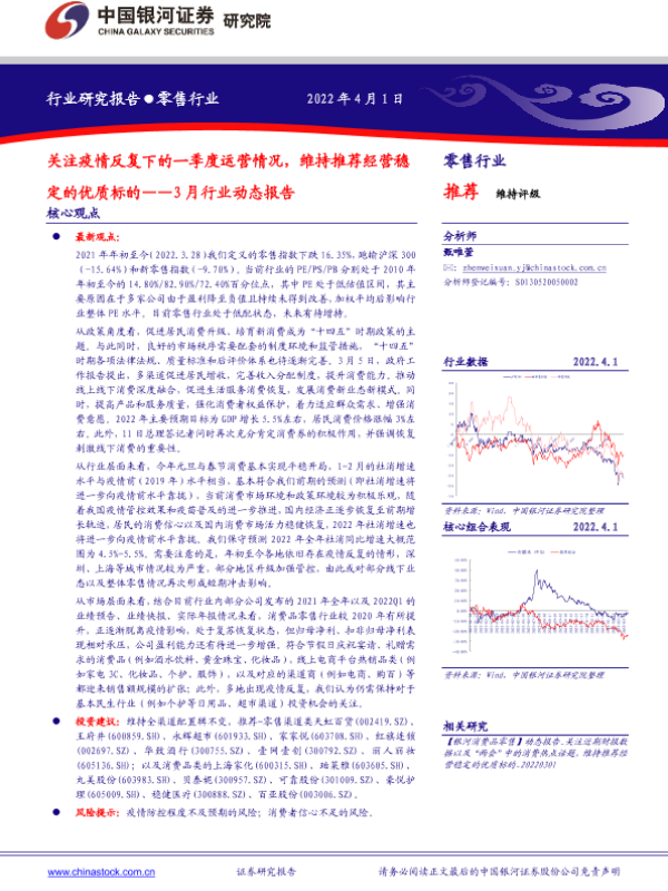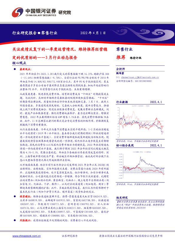 【银河证券】【20220401】零售行业3月行业动态报告:关注疫情反复下的一季度运营情况,维持推荐经营稳定的优质标的-27页