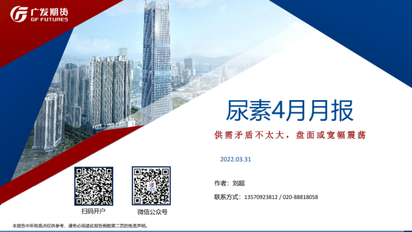【广发期货】【20220331】尿素4月月报:供需矛盾不太大,盘面或宽幅震荡-26页