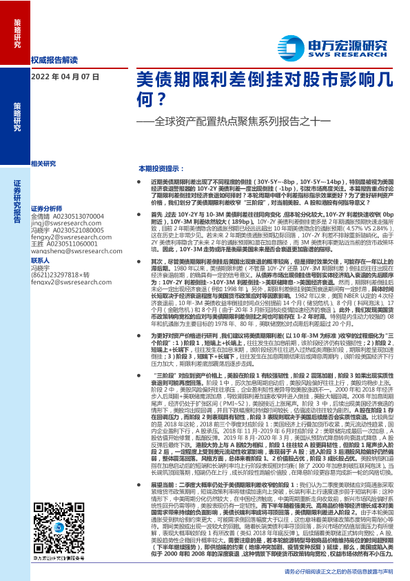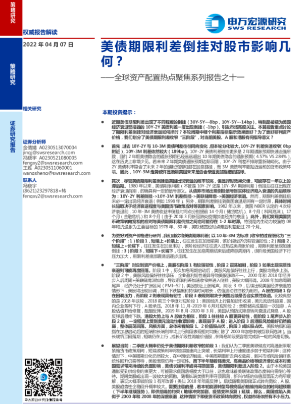 【申万宏源】【20220407】全球资产配置热点聚焦系列报告之十一:美债期限利差倒挂对股市影响几何?-20页