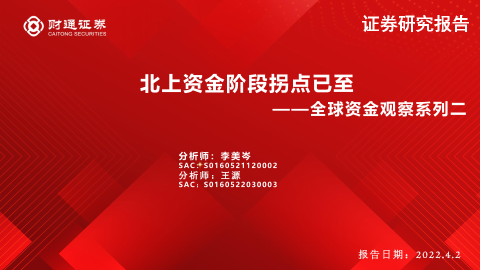 【财通证券】【20220402】全球资金观察系列二:北上资金阶段拐点已至-26页