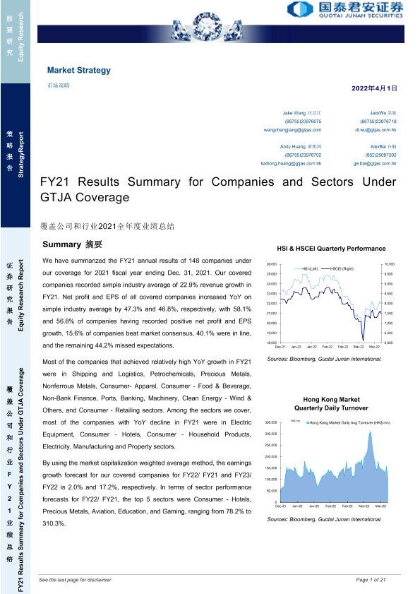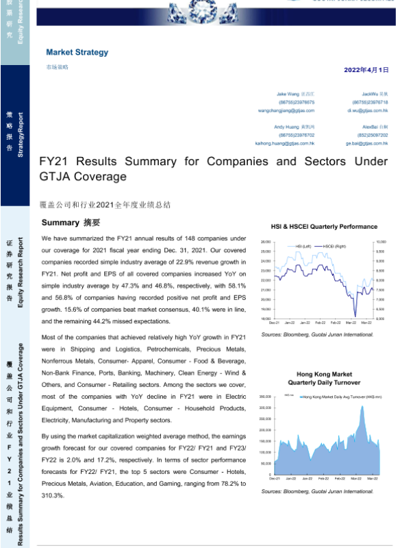 【国泰君安证券】【20220401】市场策略:覆盖公司和行业2021全年度业绩总结-21页