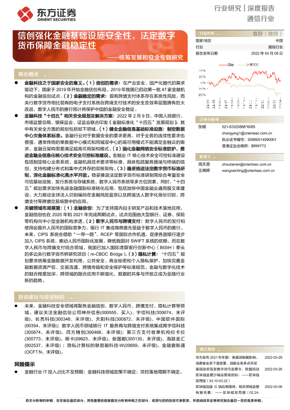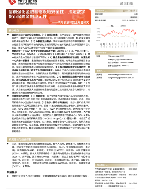 【东方证券】【20220405】通信行业统筹发展和安全专题研究:信创强化金融基础设施安全性,法定数字货币保障金融稳定性-23页
