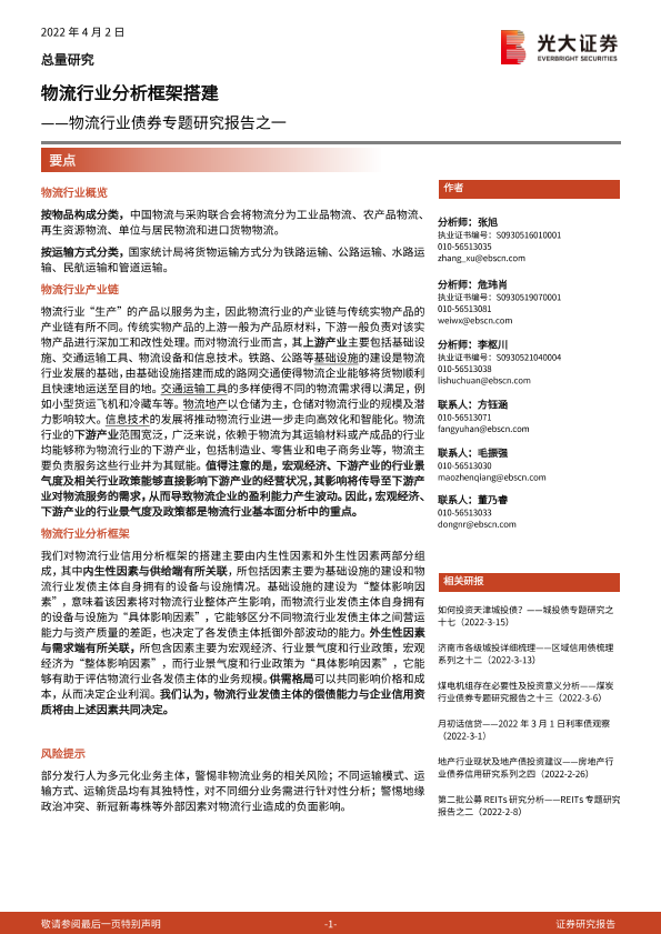 【光大证券】【20220402】物流行业债券专题研究报告之一:物流行业分析框架搭建-25页
