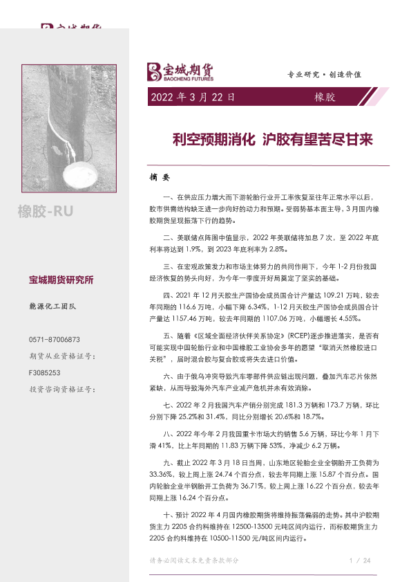 【宝城期货】【20220322】橡胶月报:利空预期消化,沪胶有望苦尽甘来-39页