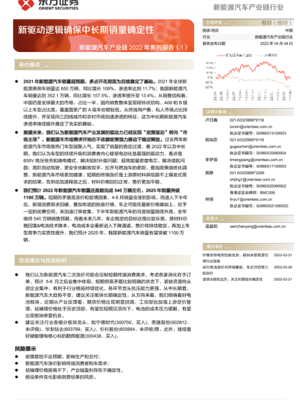 【东方证券】【20220404】新能源汽车行业产业链2022年系列报告(1):新驱动逻辑确保中长期销量确定性-19页