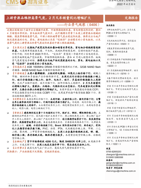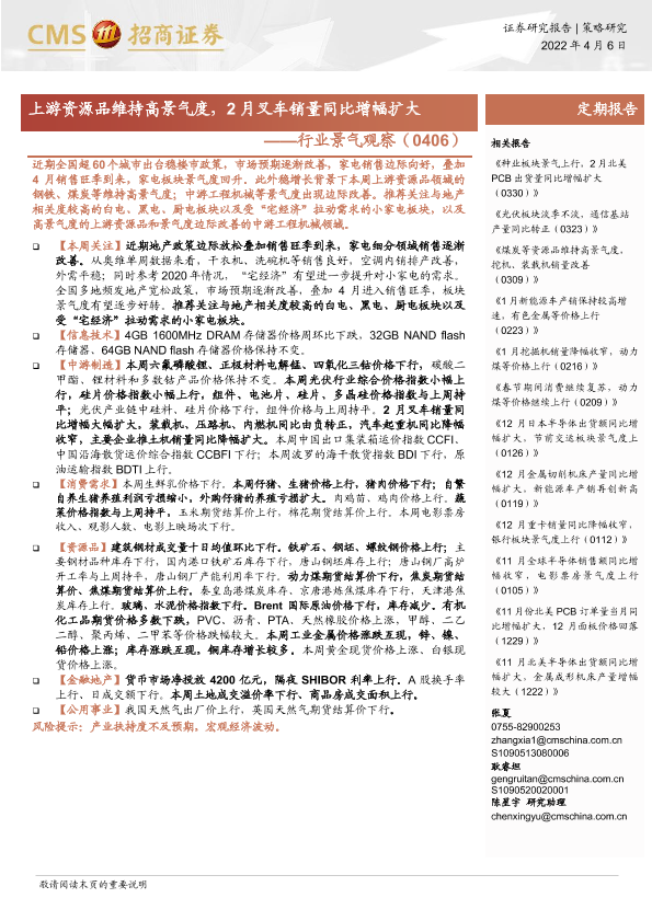 【海通证券】【20220406】行业景气观察:上游资源品维持高景气度,2月叉车销量同比增幅扩大-27页