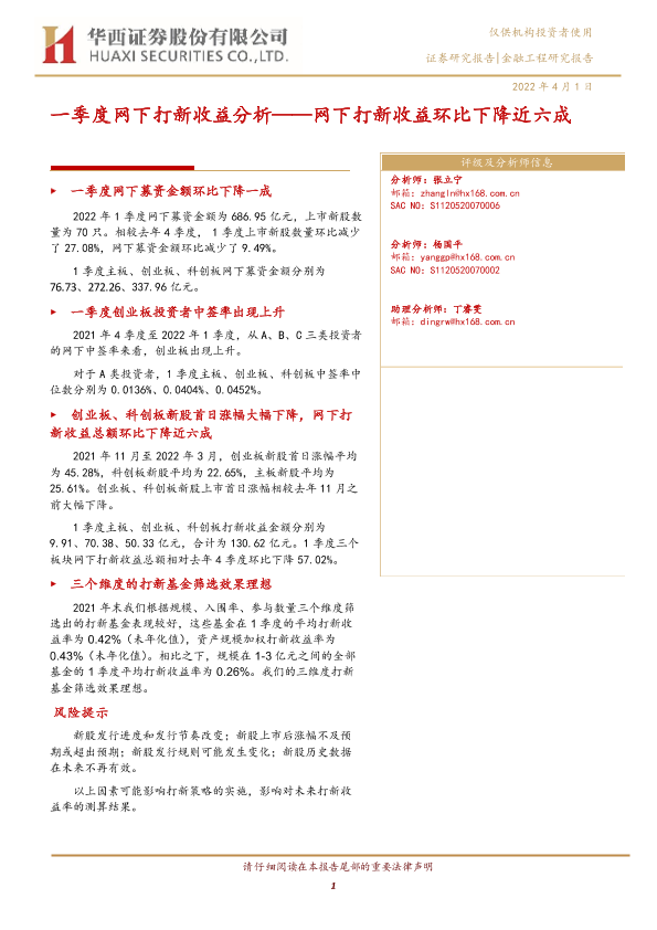 【华西证券】【20220401】一季度网下打新收益分析:网下打新收益环比下降近六成-15页