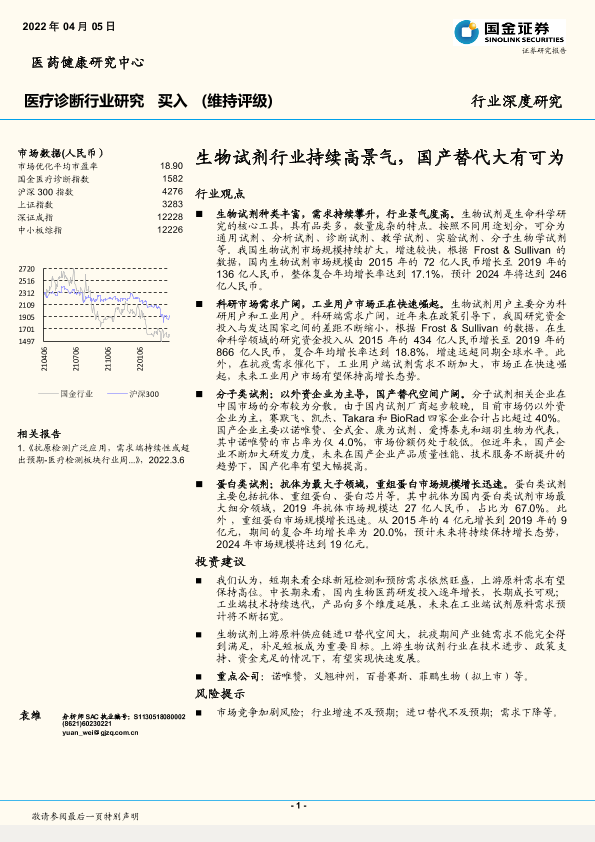 【国金证券】【20220405】医疗诊断行业深度研究:生物试剂行业持续高景气,国产替代大有可为-20页
