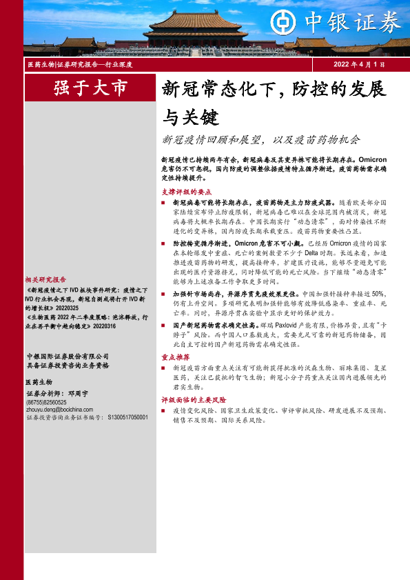 【中银证券】【20220401】医药生物行业深度:新冠常态化下,防控的发展与关键,新冠疫情回顾和展望,以及疫苗药物机会-45页