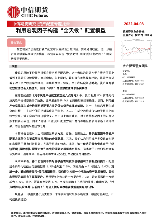 【中信期货】【20220408】资产配置专题报告:利用宏观因子构建“全天候”配置模型-15页
