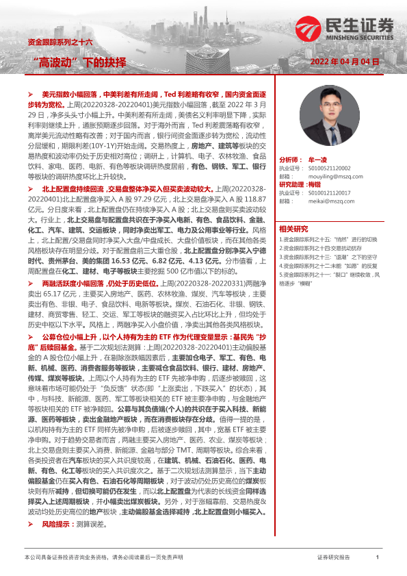 【民生证券】【20220404】资金跟踪系列之十六:“高波动”下的抉择-27页