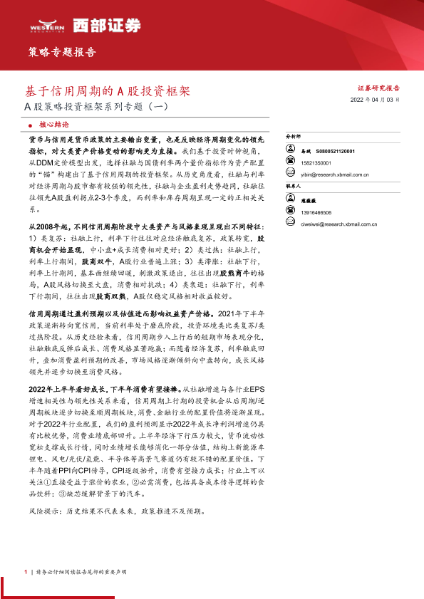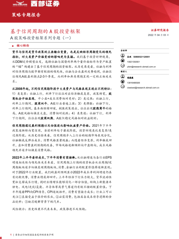 【西部证券】【20220403】A股策略投资框架系列专题(一):基于信用周期的A股投资框架-20页