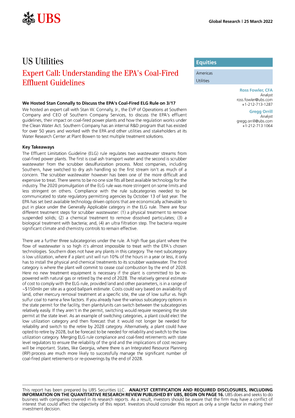 【瑞银】【20220325】瑞银-美股公用事业行业-专家电话:了解EPA的燃煤排放指南-22页