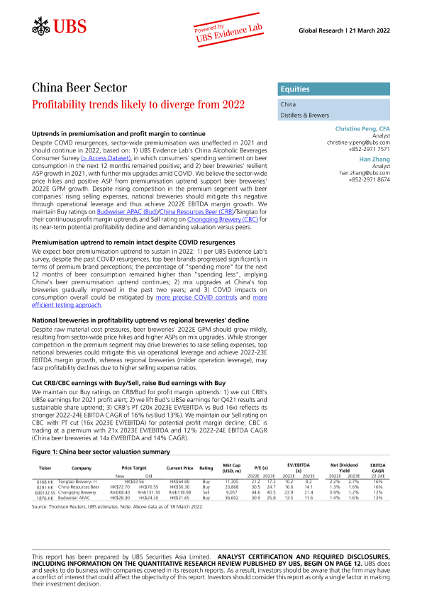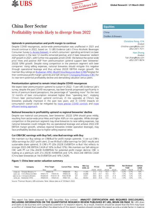 【瑞银】【20220321】瑞银-中国啤酒行业-盈利趋势可能从2022年开始偏离-21页