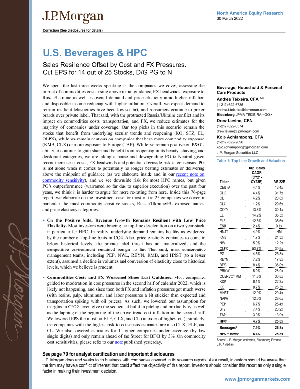 【J.P. Morgan】【20220330】J.P. 摩根-美股零售行业-饮料、家庭和个人护理产品:销售弹性被成本和外汇压力抵消-74页