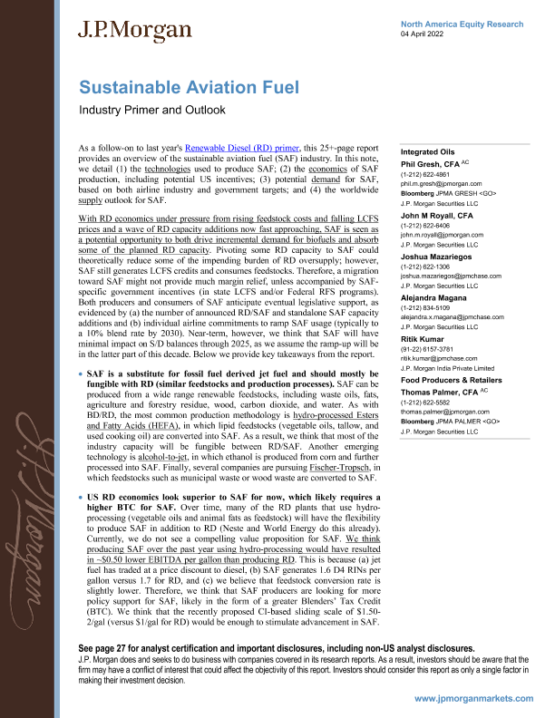 【J.P. Morgan】【20220404】Sustainable Aviation Fuel Industry Primer and Outlook-31页