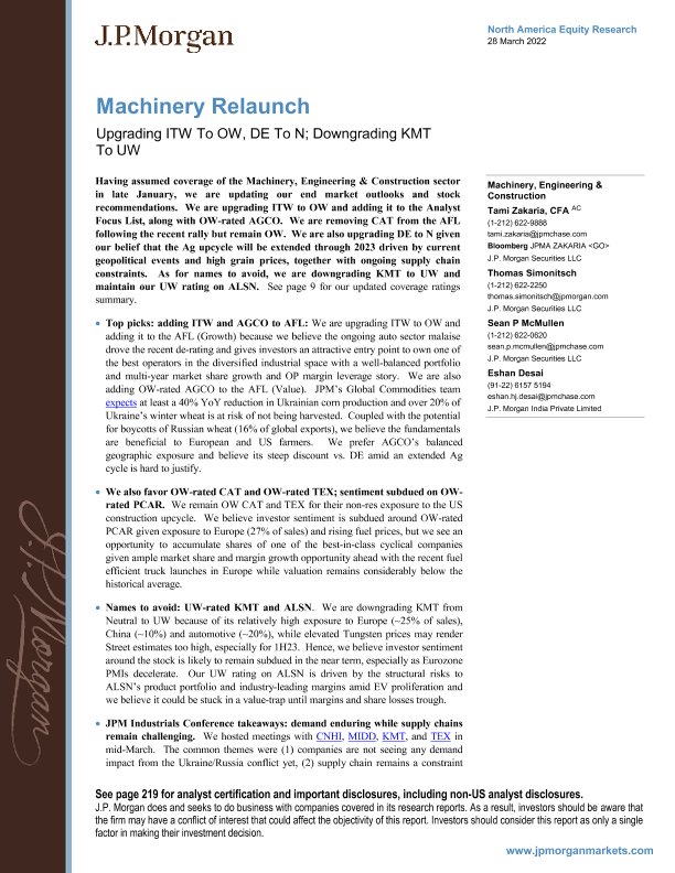 【J.P. Morgan】【20220328】Machinery Relaunch Upgrading ITW To OW, DE To N; Downgrading KMT To UW-223页