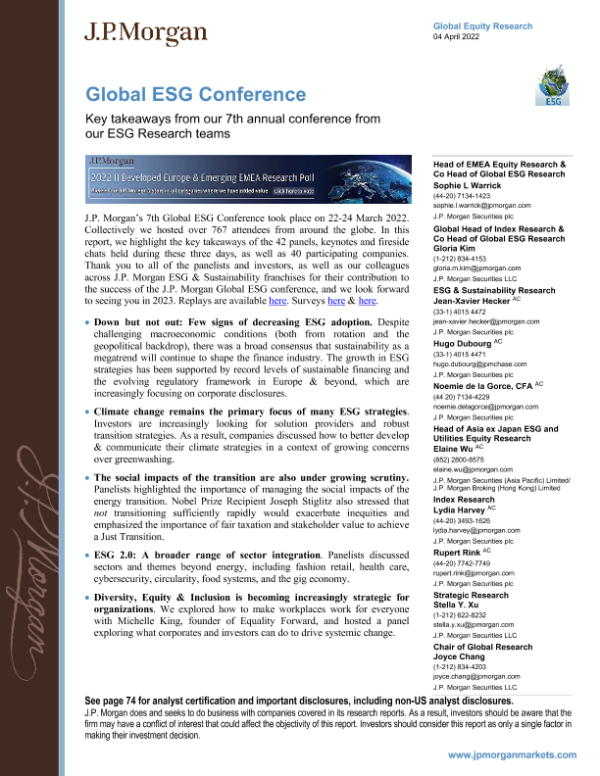 【J.P. Morgan】【20220404】J.P. 摩根-全球投资策略-ESG研究团队第七届年会的关键要点-78页