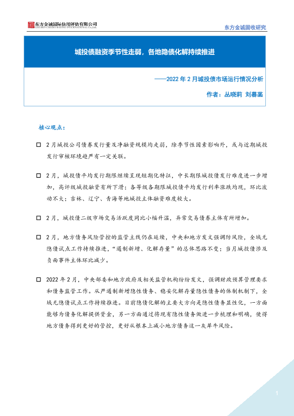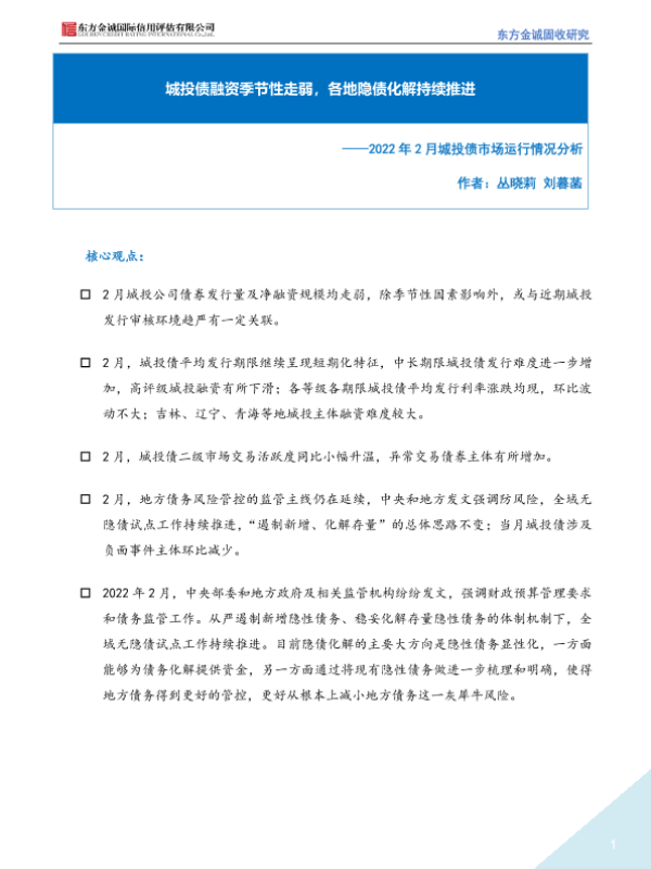 【东方金诚】【202202】2022年2月城投债市场运行情况分析报告-14页