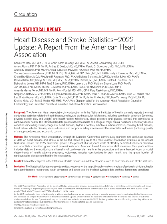 【American Heart Association】【2022】Heart Disease and Stroke Statistics—2022 Update A Report From the American Heart Association-487页